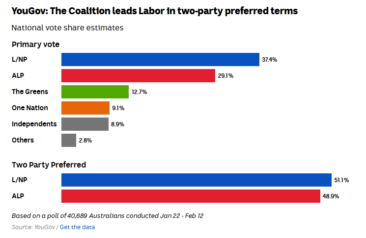 The swing back to Labor was underway by the time of YouGov’s March MRP which I wrote about for ABC News.